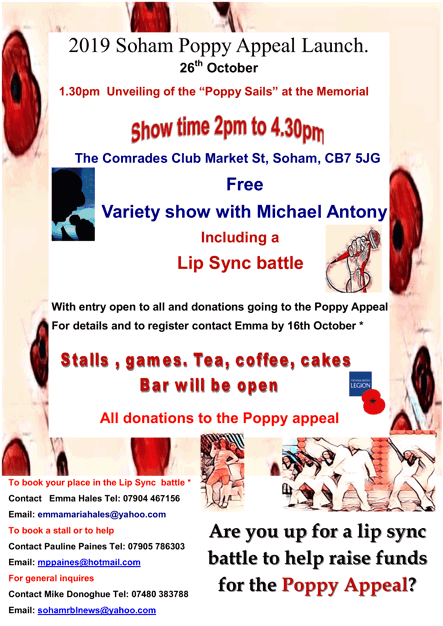 Huntingdonshire RBLWS Christmas Fayre - Saturday 23rd November at Warboys Parish Centre between 10am and 2pm, everyone is welcome