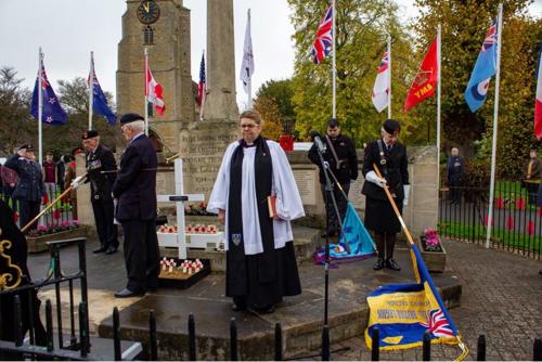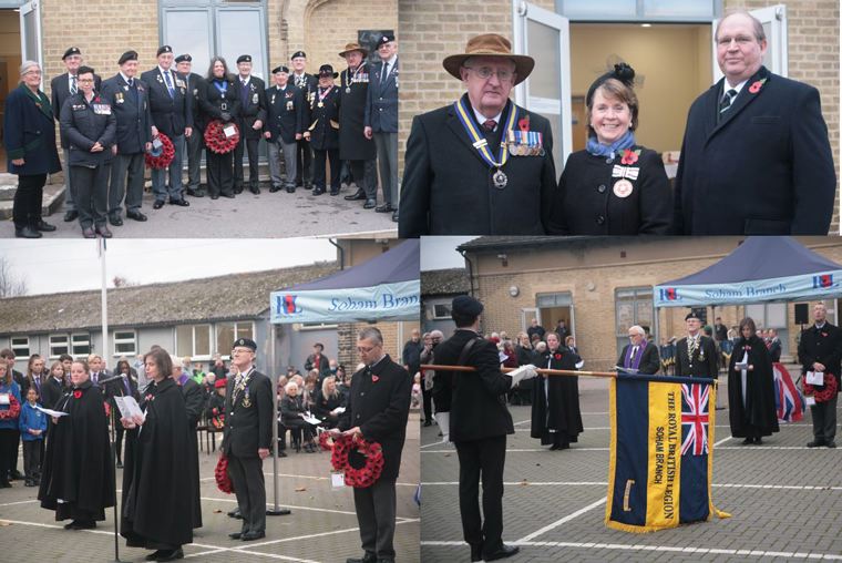 Sawston & Pampisford are represented by our own Standard Bearer May Fowler together with veterans from the forces Duncan Barton & Matt Reay supporting.
