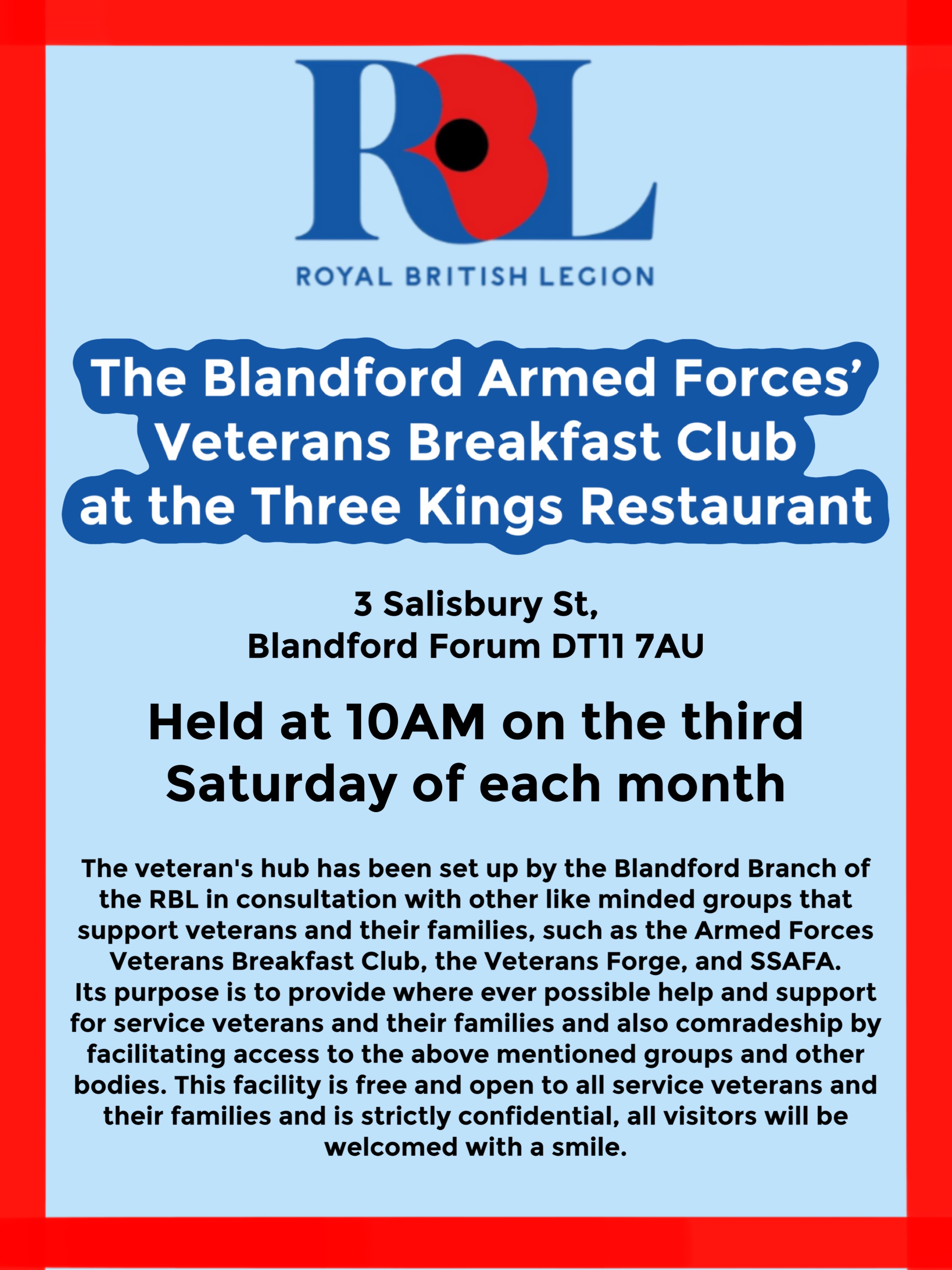Blandford's Veterans Hub For more information or to get involved, please contact Terry Clarkson: 07914067709 OR John Dallison: 07541680968