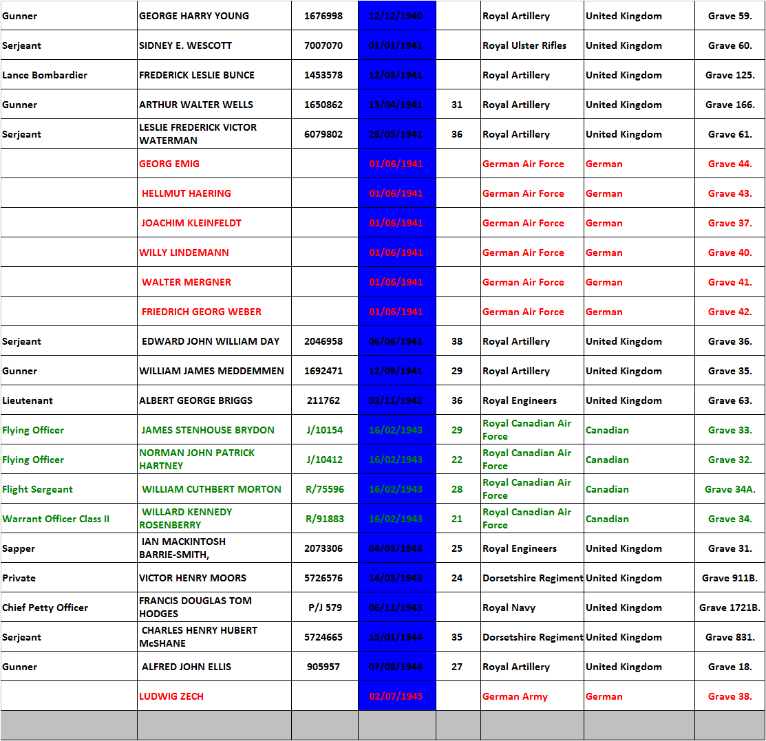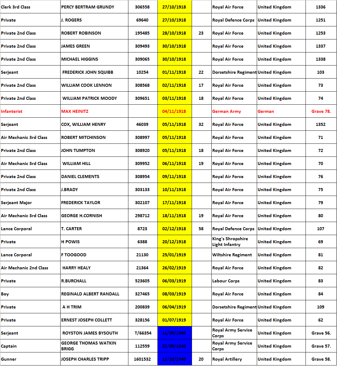 Here is the list of the Commonweath war graves in Blandford Cemetary. The main focus of its own memorial in the first week of November, the graves are kept in good condition thanks to the hard work of the town council’s groundsman.