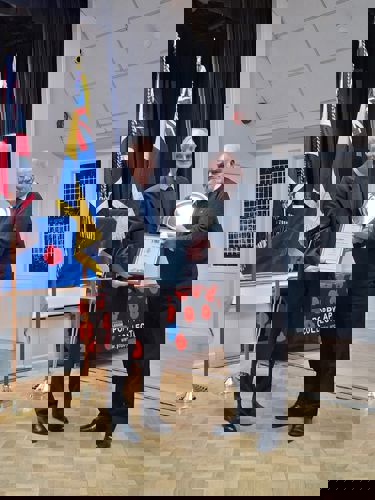 Congratulations to Tony Lucas, our branch Vice Chairman and standard bearer, who was presented with the standard bearer of the year shield and certificate at the 2024 Dorset RBL County Conference in Ferndown. Tony has represented the branch by parading the standard at various ceremonies and events throughout the year including funerals.