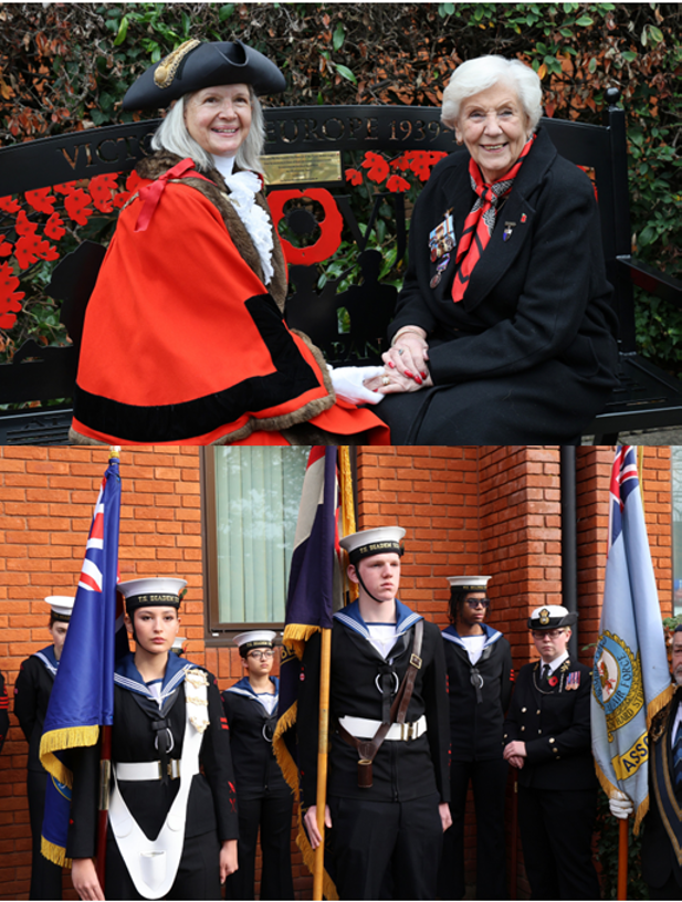 There was a definite Navel theme to evenings proceedings which will become obvious as you read on. We also had other guests with us including Pat Tedder RBL Surrey County Representative of the women's Section. There was an excellent meal provided. After the dinner Patrick Mathe Chairman welcomed everyone and introduced the first guest Beryl Thornton's son who spoke about his mother's service and read out a poem. Patrick introduced the mayor and requested we welcome the Officers and Sea cadets and Mr Tom Philbrook, they were formally piped in together with their standard. Patrick then described the details of a ship called 'HMS Camberley' the only ship to have ever be named after the town . The Mayor was then asked to unveil the restored Ships Bell which was presented to all the members and guests. The Bell will be displayed in the Foyer of the care home so people can see it. The Bell had a new wooden made mount, made by 'the Men's Shed'. The inscription on the Bell reads for 'The town for the Country and for our freedom'. Next on the Agenda was the presentation of the Branch's 100 year Pennant which was 4 years late in coming because of the Covid pandemic in 2021. RBL Camberley Branch is the oldest Branch in Surrey Heath and was formed in the same year as the RBL itself. The Pennant was presented to the Branch by AL Pinkerton MP. Then Patrick gave a brief talk and the evening was finished with a brief talk by Al Pinkerton MP. The was an auction which raised £200 and a donation was given for the Memorial Benches Appeal by The Camberley Bowls Club £230. A truly memorable night.