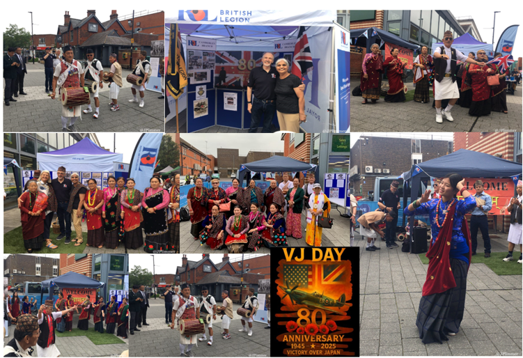 On Saturday the 17th of August in The Town Centre R B L Camberley Branch were joined by The Gurkha Members of the branch and the Nepalis community during the Day. In their wonderful traditional and colourful outfits, they performed to music with dancing to the delight of the town which was wonderful to watch. It was an honour to be with them and to be able to celebrate together to mark V J Day 80 when our brave forces combined across the commonwealth in the Asia - Pacific conflict to secure victory and win our freedom that we all have today.