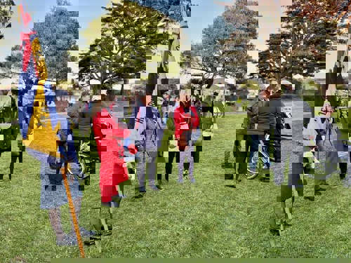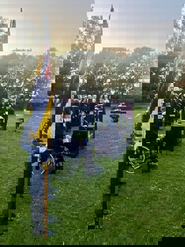 Camborne's VE Day 80 commemorations started at 9am with the raising of the VE Day 80 flag above the Passmore Edwards Building with the VE Day proclamation by the Mayor.