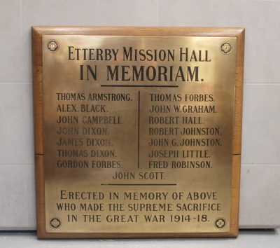 THE WAR MEMORIAL OF THE ETTERBY MISSION HALL OF THE WARWICK ROAD PRESBYTERIAN CHURCH in ENGLAND, CARLISLE