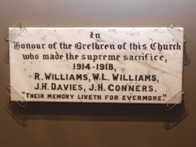 The Church of Christ was a small independent faith group which met and worshipped within the general umbrella of the non-conformist denominations. It later became a part of the United Reformed Church of England. When their Meeting-house became redundant the Memorial to their Fallen of the Great War was eventually entrusted to the care of the Museum of Military Life.