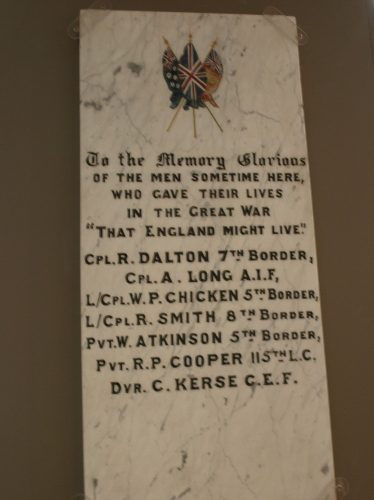 This was originally located in the long gone Police Headquarters building on West Walls, Carlisle. The Roll of Honour is now in the care of the Museum of Military Life.
