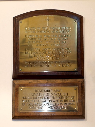 Like many rural churchyards there are references on family gravestones here at Walton to sons and husbands who fell in battle and lie far from home.