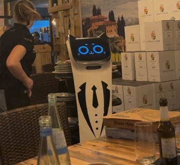 As it was not only a Sunday, but a bank holiday weekend, there weren’t many places to eat in the evening, but Phil, Branch Secretary & StandardBearer at RBL Münster Branch, had booked us a table at Rocco’s (which we learned at 18:30 and with about 10 or 20 km to go, that they closed at 21:00). Bella the robot delivered our food and later returned the plates to the kitchen.