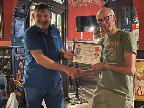 Our last CoAs were presented after our evening meal - to the cyclists and their support driver;