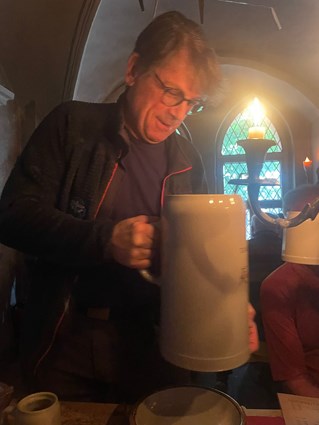 Our dinner at Zecheri Sankt Nicholai in Tangermünder had been pre-booked, as their menu offered a “small feast for over 10 people”. They also offered 5L steins of beer... However, knowing this was one of our longer days, I was concerned they might have a problem with the meal. They said the latest we could get there to be served this small feast was 19:30, as the food is slow cooked and to order; which made things a bit tight for time - especially having to fix punctures on the way. However, we did manage it - and the meal was simply amazing.
