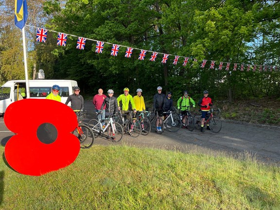 Meeting our group all together for the first time at the Cenotaph, we laid our wreath, recited the Exhortation - paused for a passing blue light - then dipped our RBL standard to honour our fallen. Ready in good time, we set off on our endeavour at 08:20 am, south along Whitehall; 9 cyclists and a support logistics minibus, borrowed from Forces United (https://forcesunited.co.uk/)