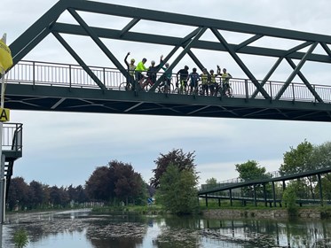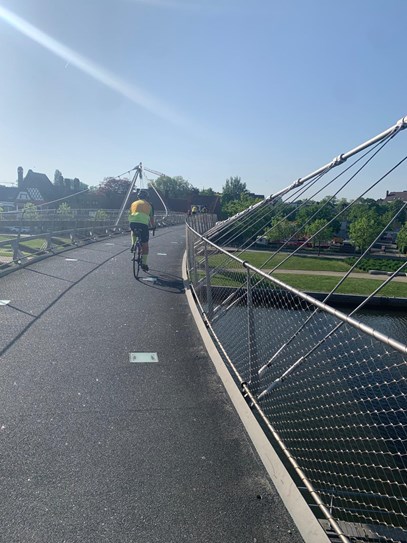 More canalside riding to Bocholt, and the new, steel pedestrian and cyclist bridge (right) became our WhatsApp group badge as we recrossed the bridge from lunch.