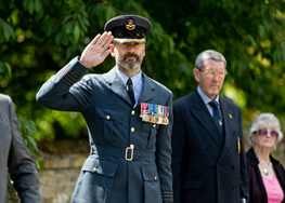 RAF Honington Station Commander Gp Capt Dutch Holland takes the salute at the memorial for Wg Cdr Nigel Elsdon