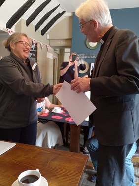 On Saturday 30th March the branch held a presentation morning at the Six Bells to thank our Poppy Appeal volunteers and to present long service awards to them.