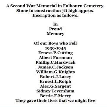 WW2 - those who fell WW2 - Those who fell in WW2 Also: John E Gibbons whose headstone is situated next to the path and railway line along Fulbourn Old Drift Phillip Cutcliffe commemorated at Nottingham Crematorium