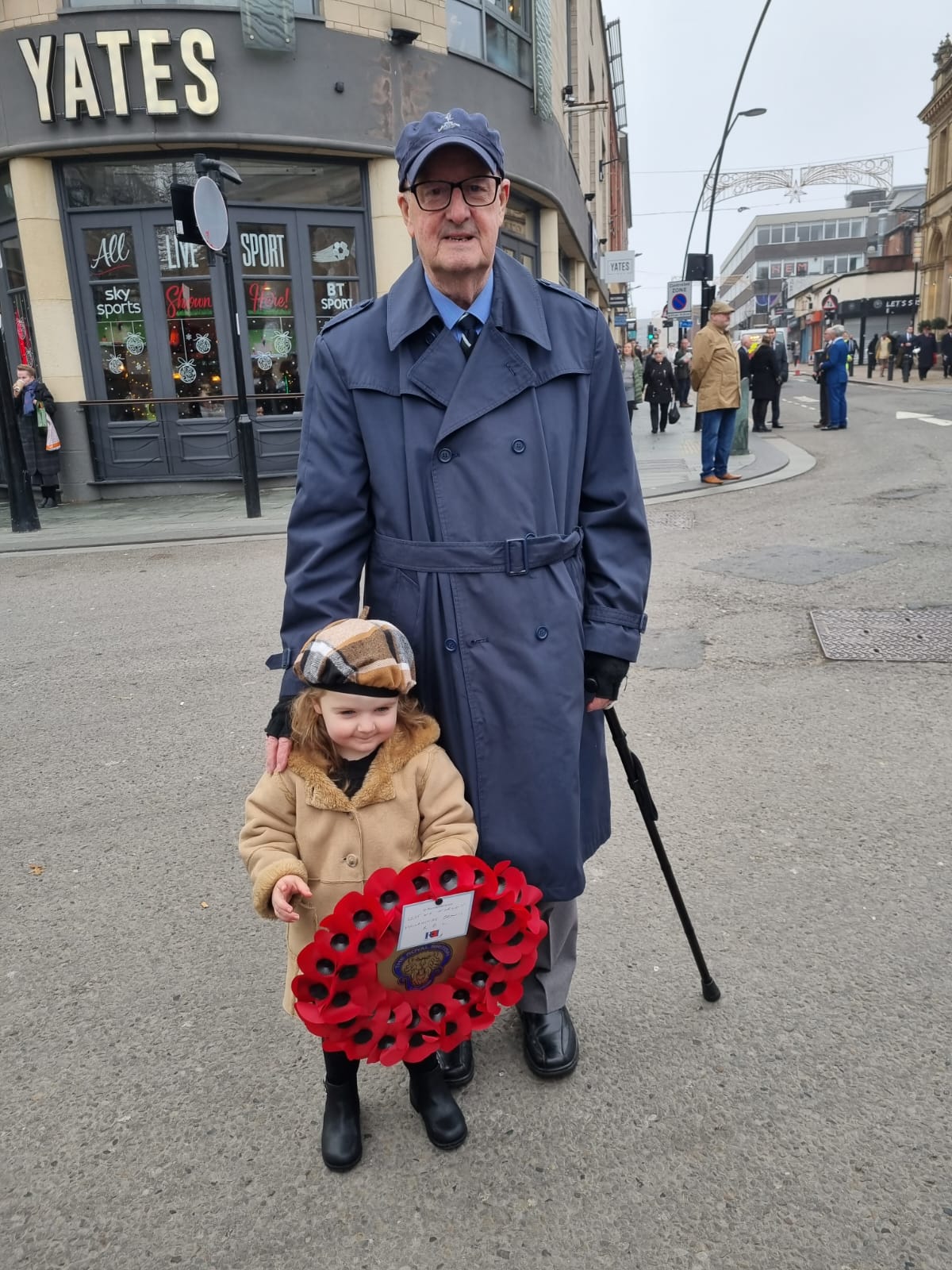 Our Branch President and immediate past Branch Chairman, Ray Williams, with his granddaughter Poppy at Barker's Pool, Sheffield for the Remembrance Sunday Parade, 13th November 2022.