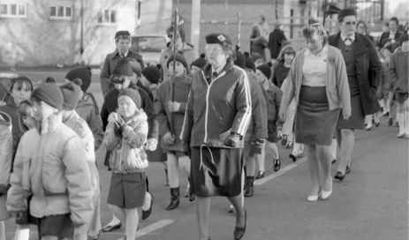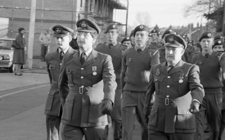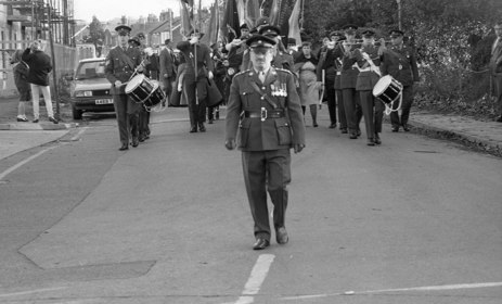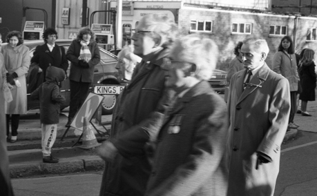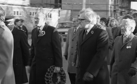Halstead Royal British Legion Branch Remembrance Sunday 1985 Halstead Royal British Legion Branch - Remembrance Sunday 1985 Above: Roy McDowell (carrying wreath), Michael Gage (dark rimmed glasses) and Percy Meadows (on the far right with the two meadows). Jackie Pell, dark haired lady to the rear of the procession. Mayor of Halstead, Tony DeFrates. Michael Portway (light coat with 2 medals) Michael Gage (dark rimmed glasses) far right to the front. Percy Meadows (closest the camera with two meadows)