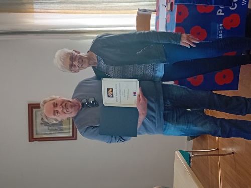 Pam is being presented with the Certificate by our Branch Chairman, Terry Waldron.