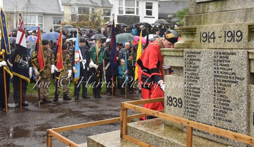The Town Council organised a very good show. There was a good turn out of onlookers and attendees for the parade. The Chair of Cornwall Council attended and laid a wreath along with a wide representation from the town.