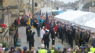 Each year a modest group of people, led by members of the Royal British Legion, gather at the Town War Memorial in Broad Street for a simple ceremony of Remembrance. It is led by the Town Mayor and the Honorary Chaplain to the Stamford Branch of the Legion who begins with a short prayer, followed by the RBL Exhortation, the Last Post, Two Minute Silence, Reveille, and the Kohima. The ceremony concludes with another short prayer.