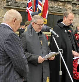 The Service is conducted by the Honorary Chaplain of the Royal British Legion in Stamford, supported by the Mayor’s Chaplain, the Chaplain to RAF Wittering, and ministers of other denominations. After an initial prayer, the Last Post, and the RBL Exhortation, a Two Minute Silence is held at precisely 11.00am to mark when the guns fell silent in World War One. The Reveille is then played, followed by the ‘Kohima’.