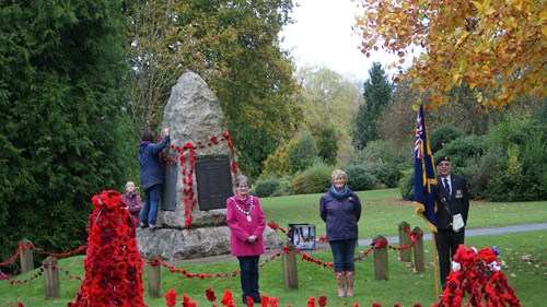 Throughout the year Members of Wellington Women's Institute Knit and crochet Poppies, these are used in November to decorate the Railing around the war memorial, the war memorial itself, the remembrance garden in Wellington park, Railings in the town centre, parts of lancer court and there is also an amazing poppy cascade which is put into Monmouth Gardens, Wellington Branch appreciated the hard work the members of Wellington Women's institute put in every year, they even decorate the pop-up shop when the wellington poppy appeal is in there.