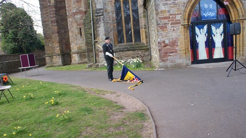 On Sunday 18th April 2021, Wellington Branch came together with Wellington Town Council and St Johns Parish Church to commemorate the life of H.R.H Prince Philip,Duke of Edinburgh. Thiswas done in the churchyard in a socially distanced manner. President of Wellington Branch, Michael Rose made a speech about Prince Philip's long military background and Branch Chaplin Revd. Tim Treanor led the Service. Chairmen and Standard Bearer Robert Trickey dipped the standard while the National Anthem was sung