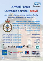 Somerset NHS Armed Forces Link Workers Jon & Lou along with representatives of other support agencies, will be holding monthly AM or PM Support & Coffee sessions .