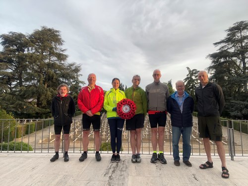 On the second day, we were so cold and wet, Chloe and Chris stayed in a cafe while we pressed on to our hotel - each armoured with a bin bag down the front to keep out the cold (we had already decided to go directly there at the previous stop, missing Assisi and its CWGC) so I could return with the van and pick them up. We felt sure the village one-way system would have had Martin ending up in a ditch somewhere.