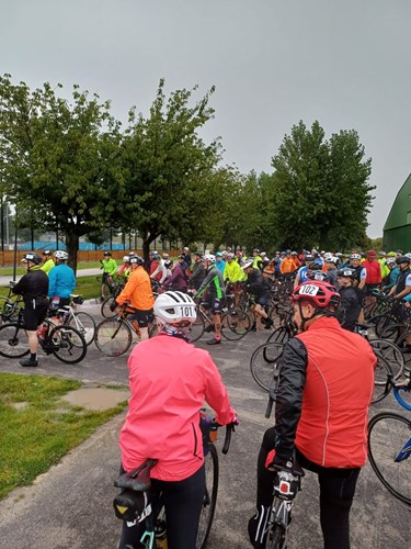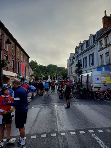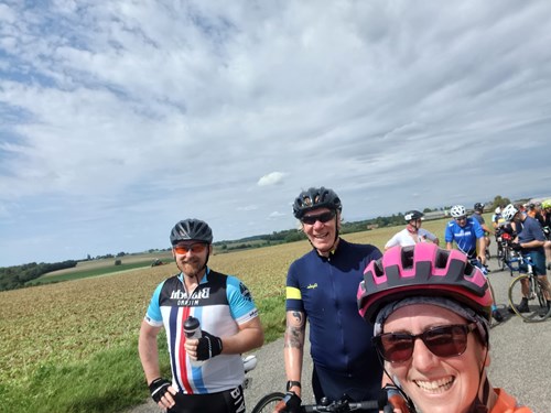 Day 3 start, Abbeville to Beauvais today. Bit of drizzle but nowhere near as wet as Day 2! In Lorna's words, “the hardest days cycling she's ever done in yesterday's conditions”. Day 3, was a much better day, allowing Lorna to move up to the middle pace group.
