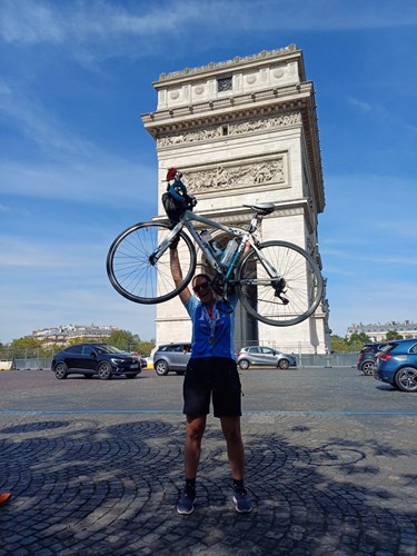 4 DAYS, 453 kms, One tired body. Lorna Burrows has completed the Pedal to Paris finishing at the Arc de Triomphe.