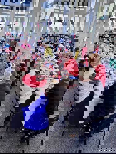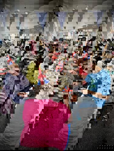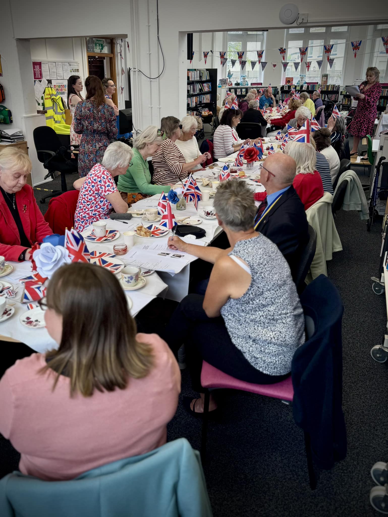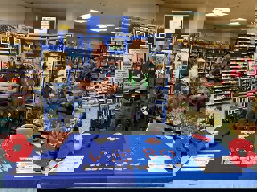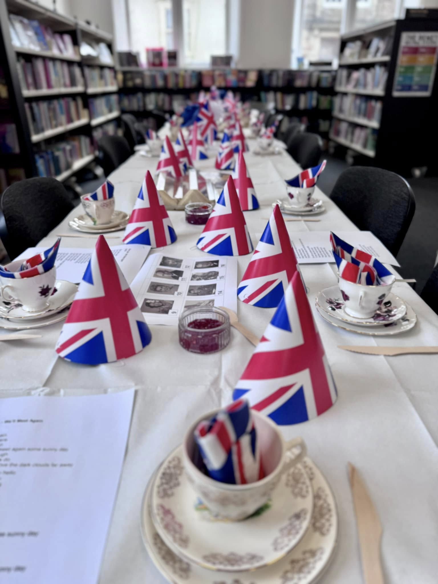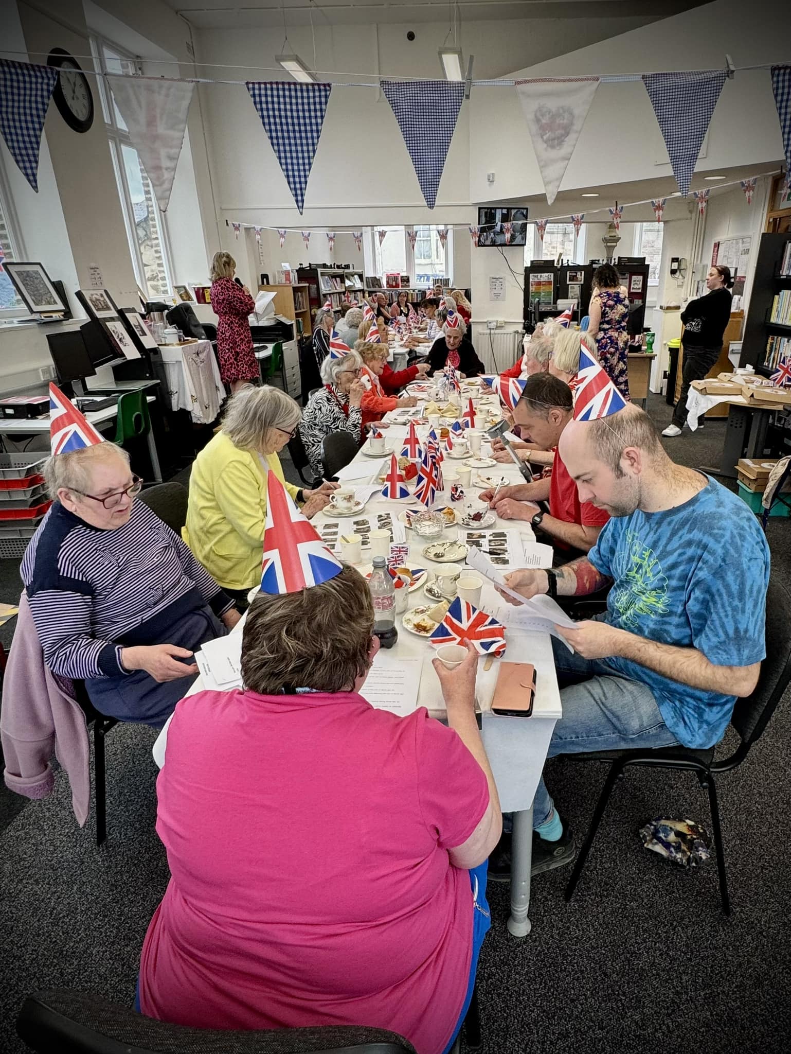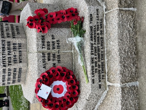Later at approximately 10.45am, there was a service at the War Memorial at St Martin & St Meriadoc Church, Camborne with Camborne Branch of The Royal British Legion, following which Camborne Library hosted a street party for invited library users.