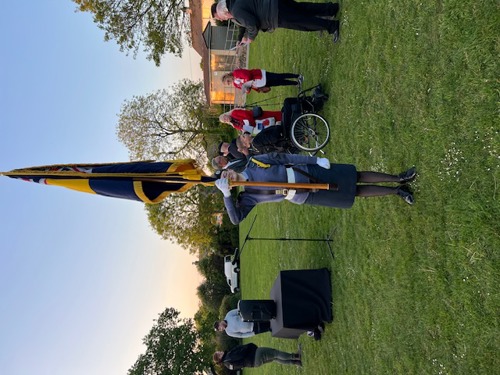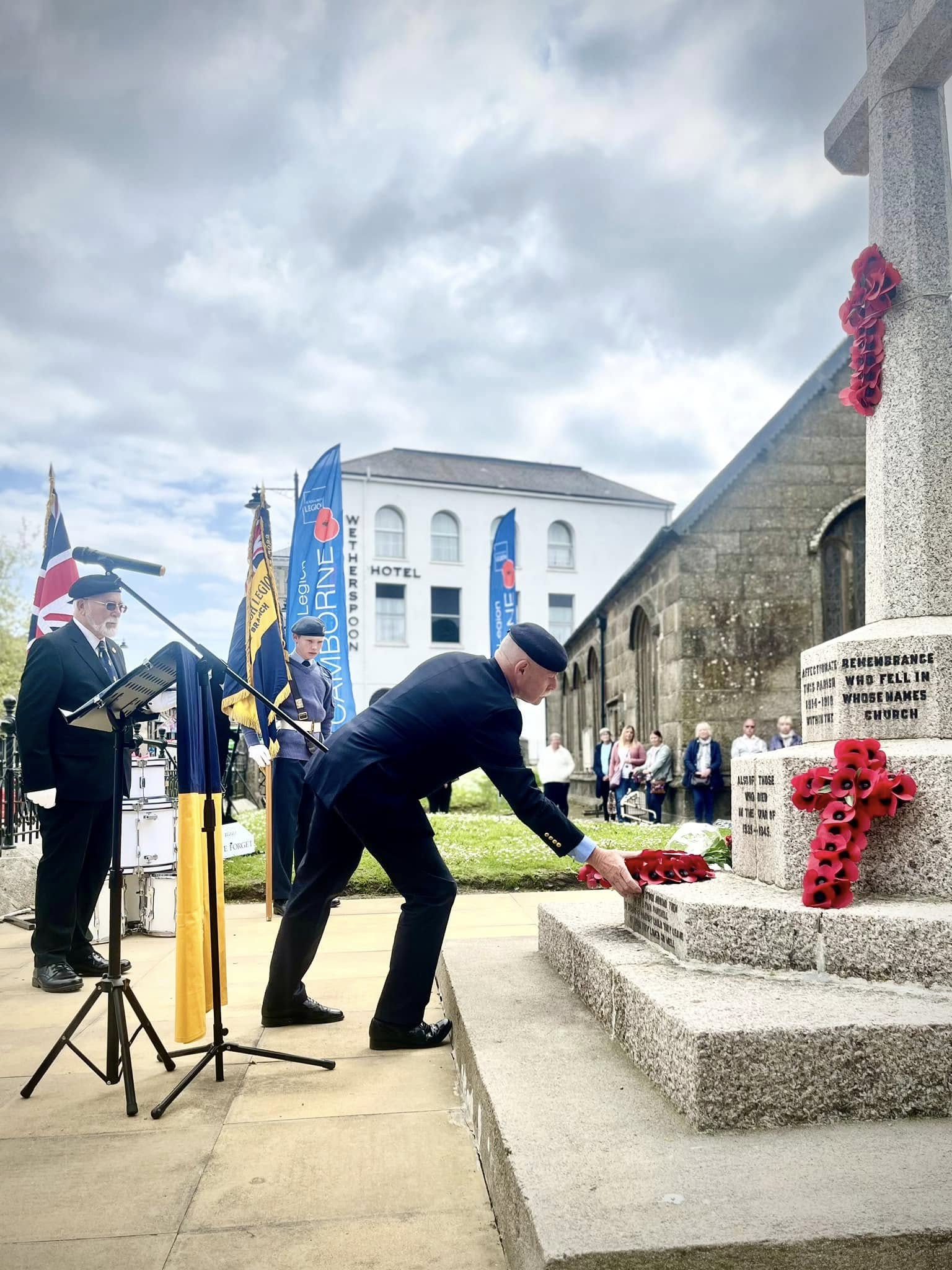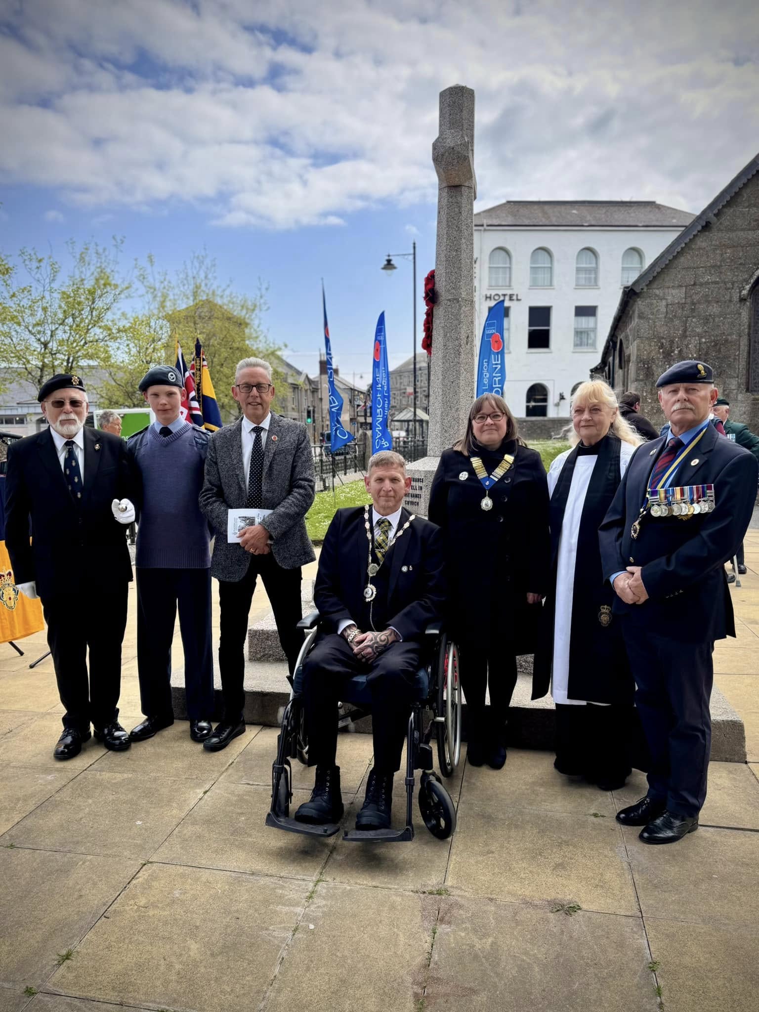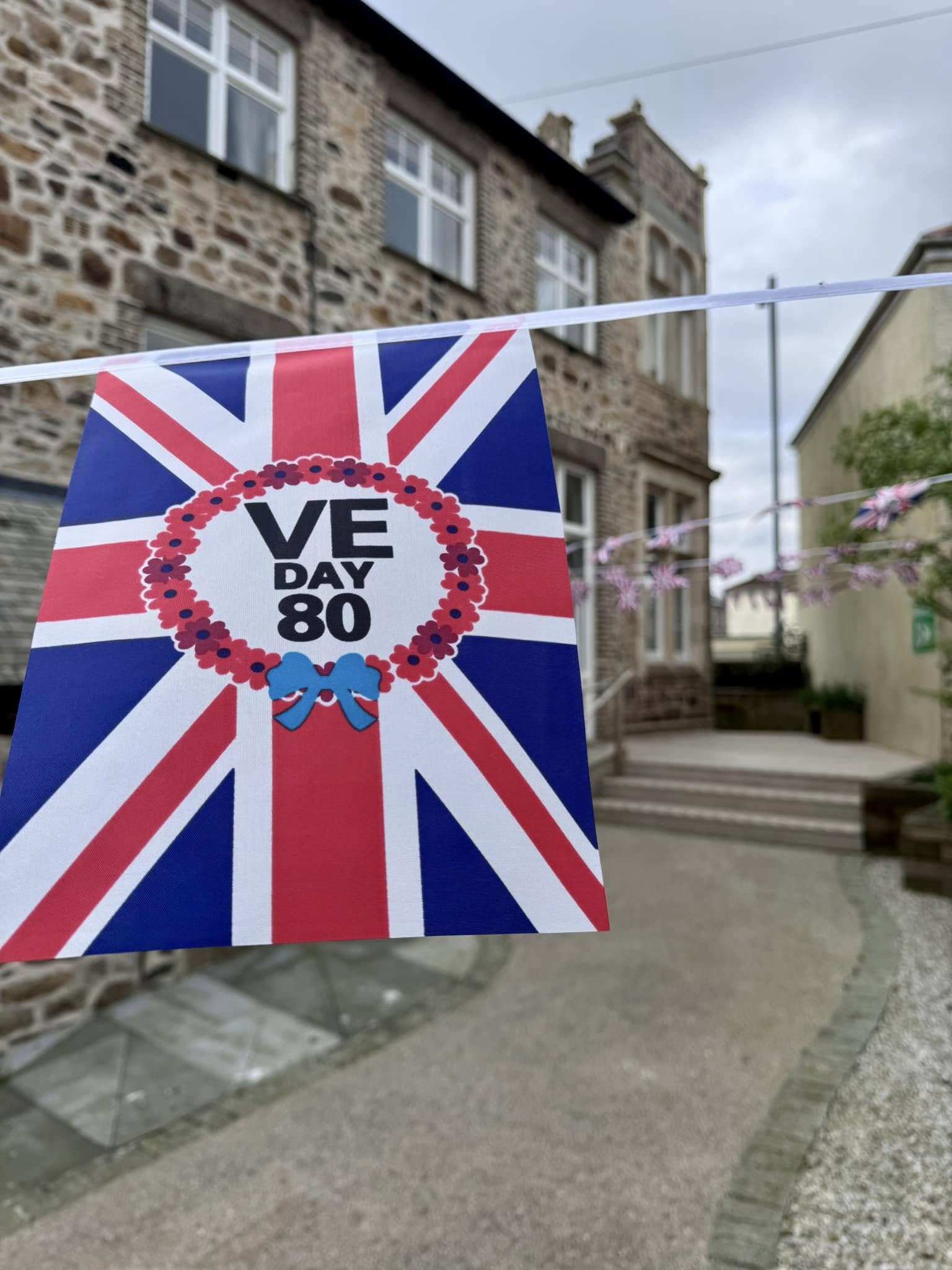 Camborne's VE Day 80 commemorations started at 9am with the raising of the VE Day 80 flag above the Passmore Edwards Building with the VE Day proclamation by the Mayor.