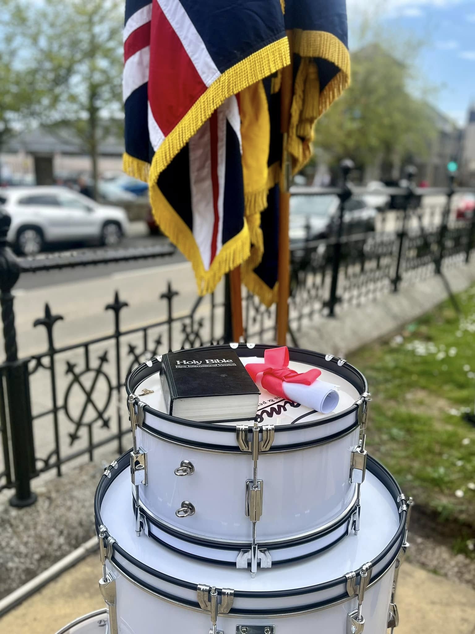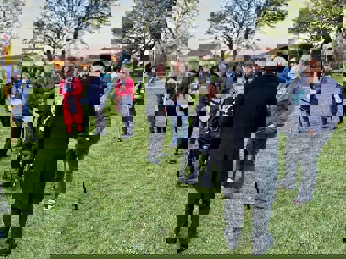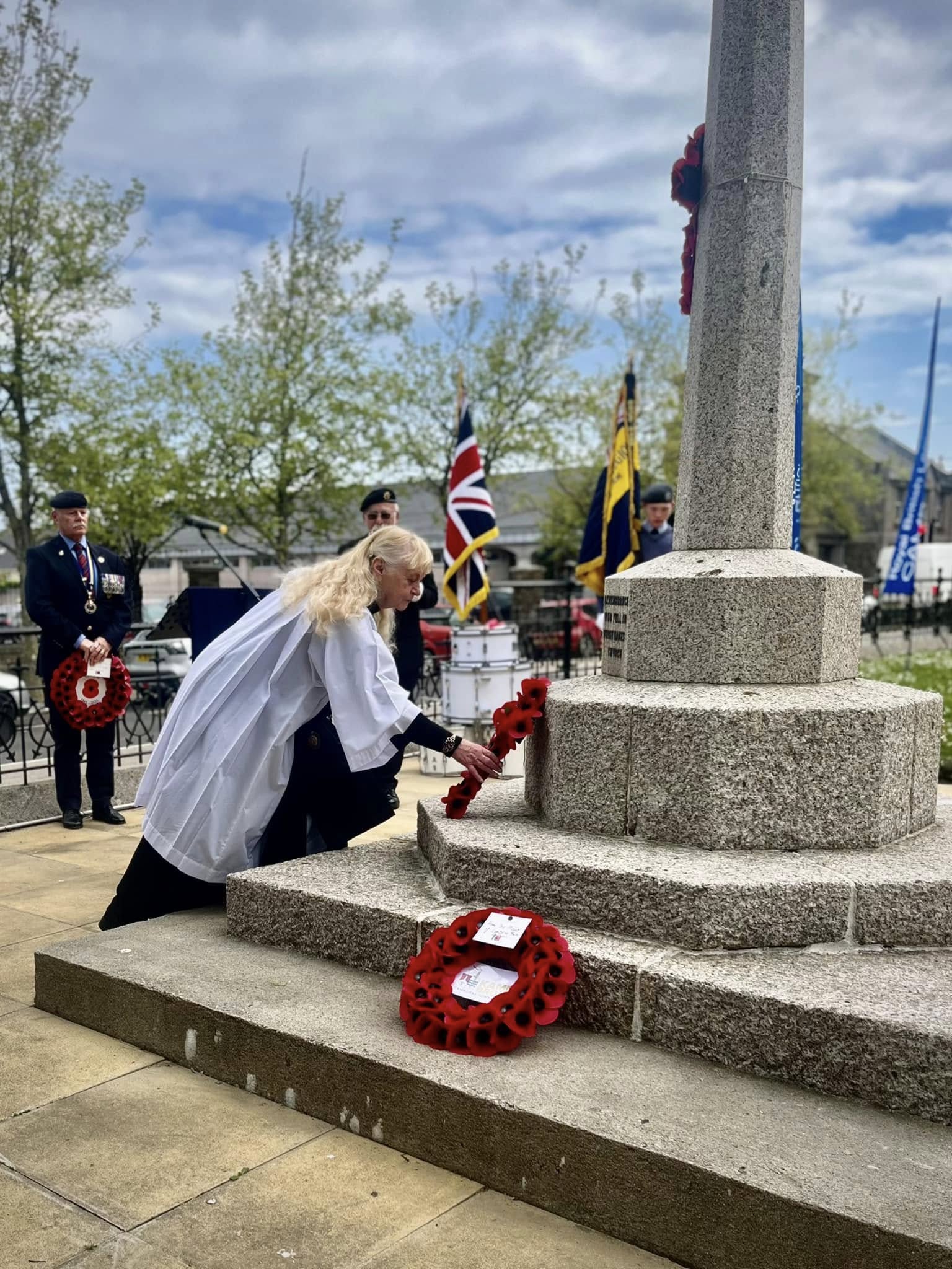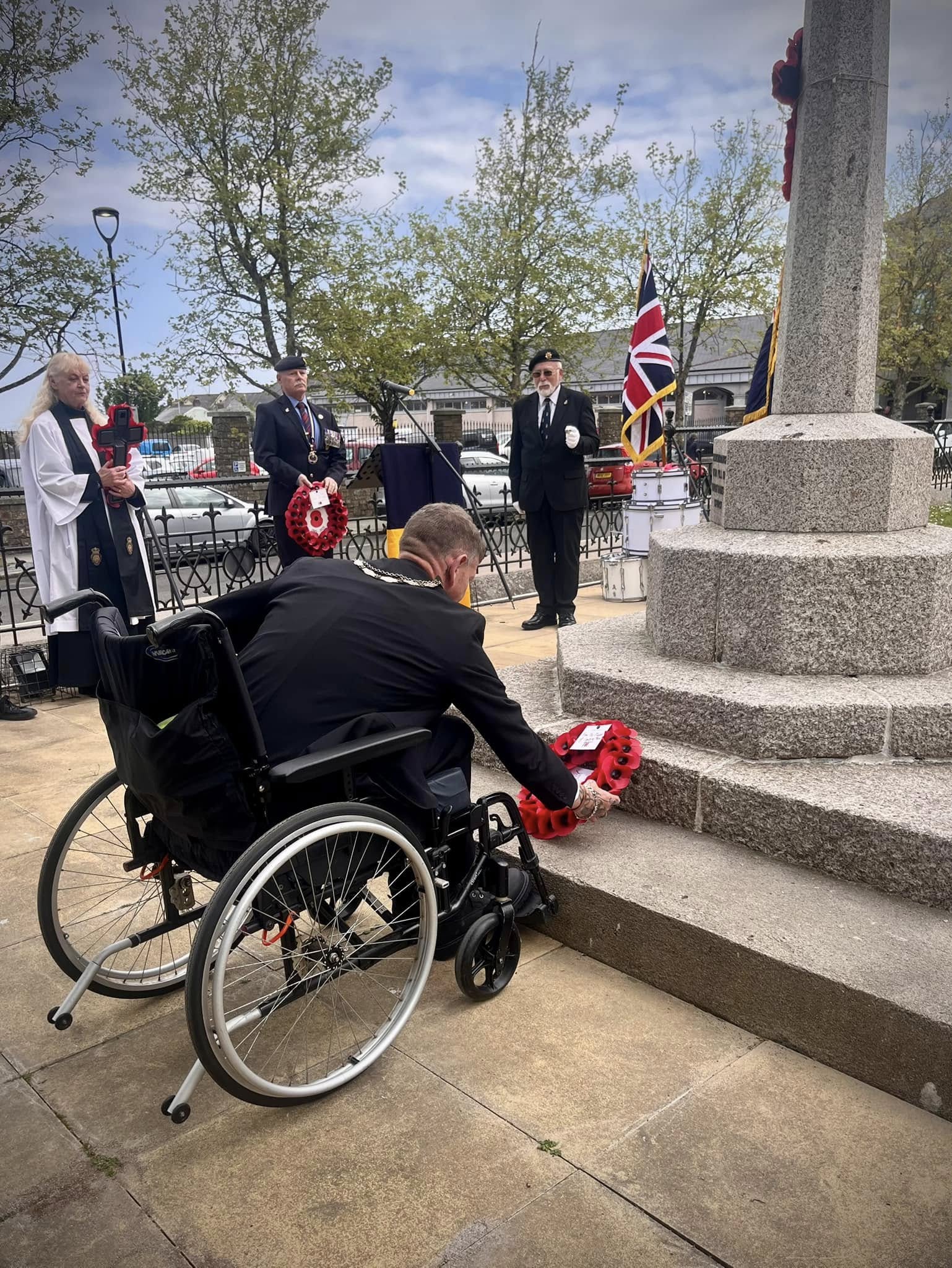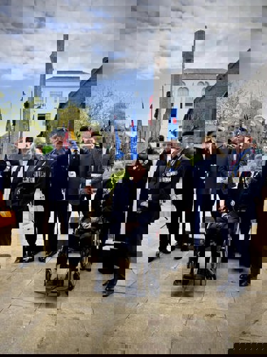 Camborne's VE Day 80 commemorations started at 9am with the raising of the VE Day 80 flag above the Passmore Edwards Building with the VE Day proclamation by the Mayor.