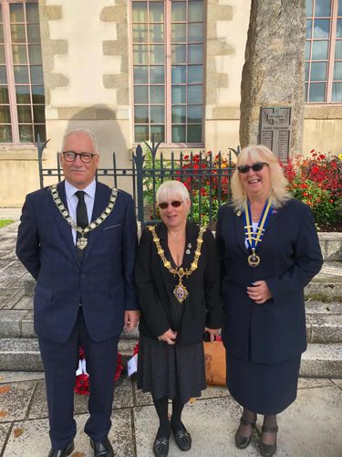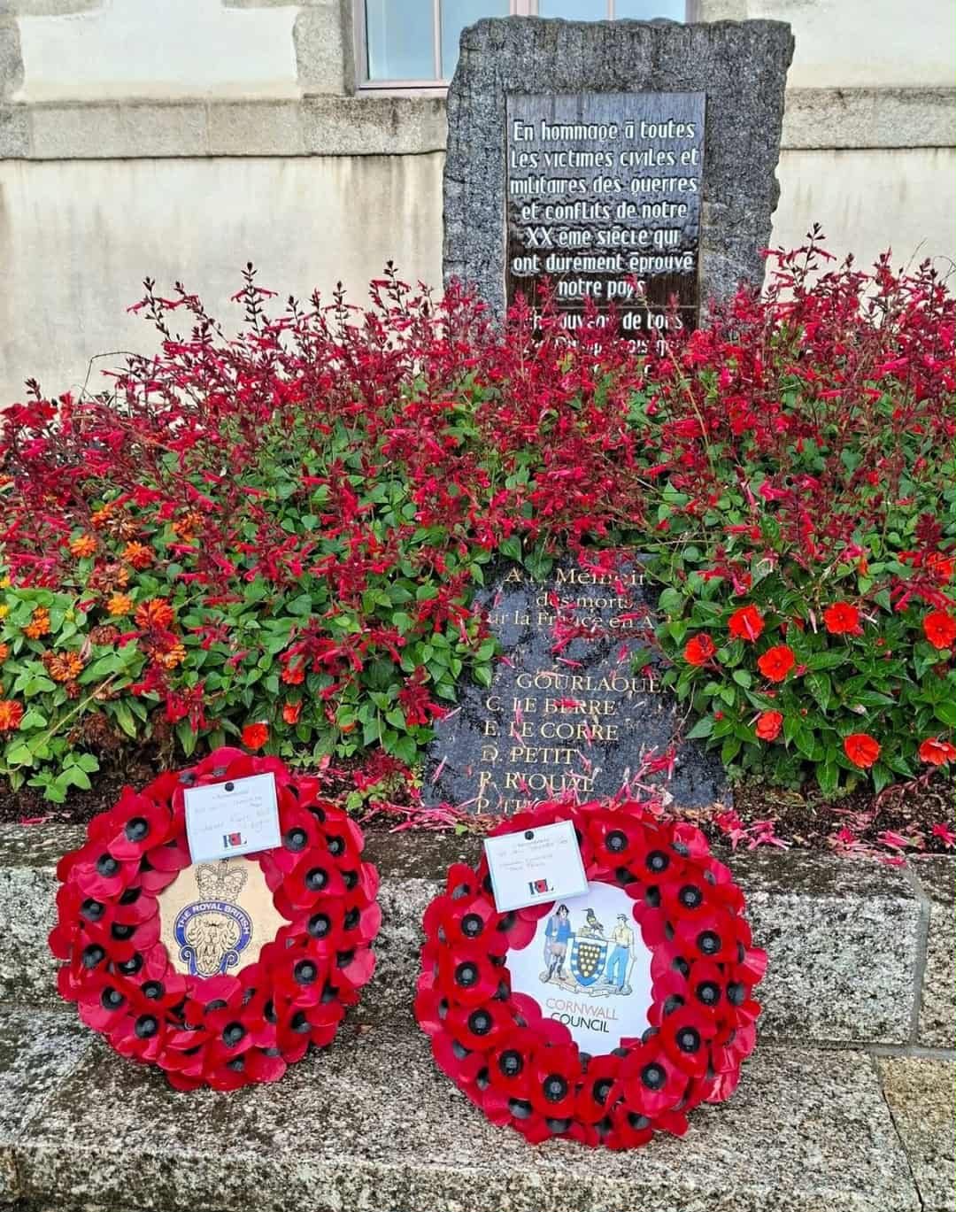 The Liskeard Branch was invited to send some members to join the Town Council in celebrating 50 years of twinning Liskeard with Quimperlé, in this 80th year of the Liberation of France. Branch Chair Chrissie Henwood and Standard Bearer Simon Cassidy carried out that duty with immense pride and our wreath was laid. Thank you both.