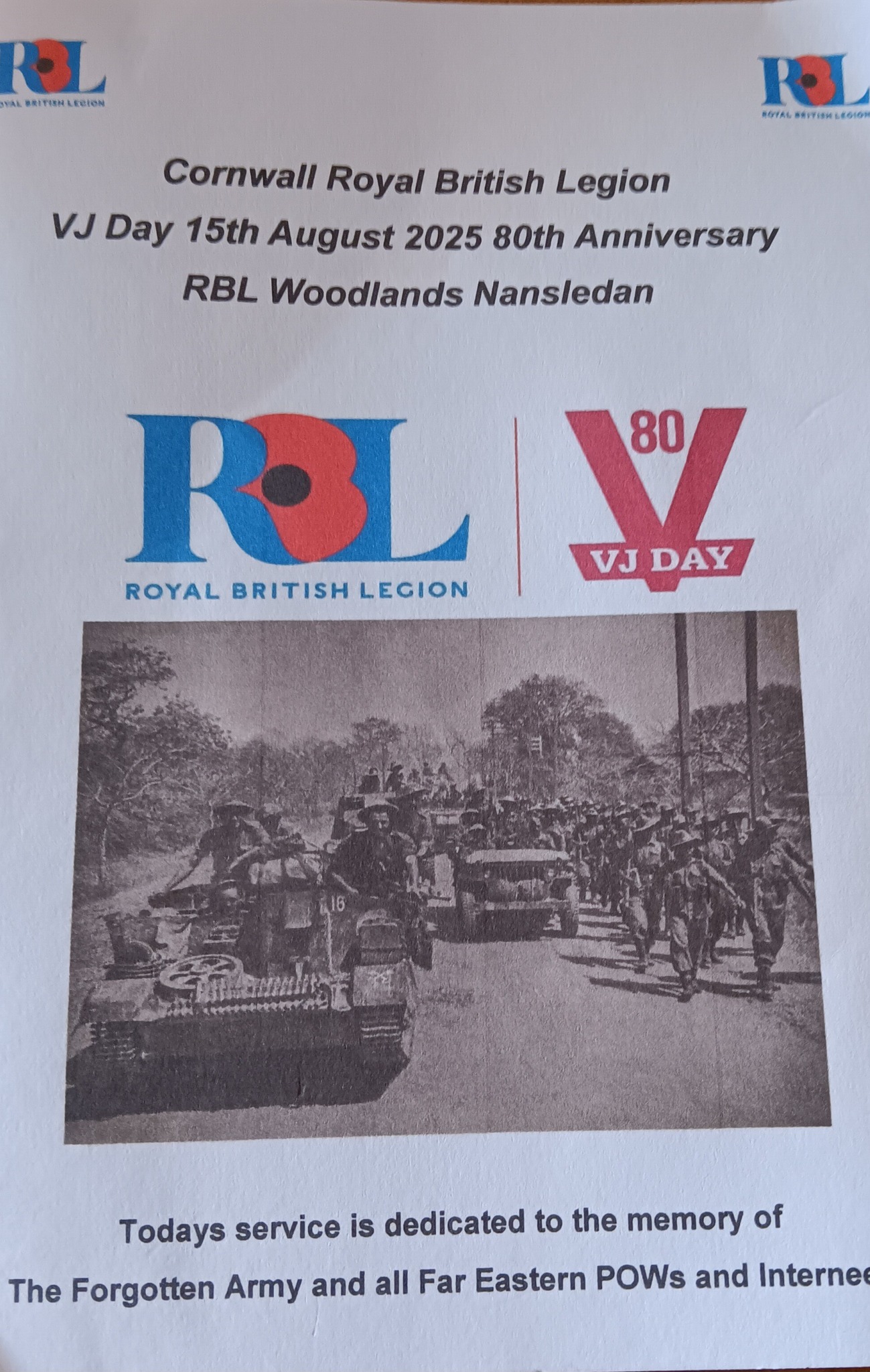 The VJ Day commemoration at Cornwall RBL Woodland in Nansledan that took place on August 15, 2025, at 17.00hrs, featuring a service and wreath-laying ceremony to honour those who served in World War II.