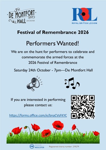 Festival of Remembrance 2026: Saturday 24th October 2026 at 7pm De Montfort Hall, Leicester To contact the event organisers email the Festival Chairman: Reece Pickering MSc Email: [email protected]