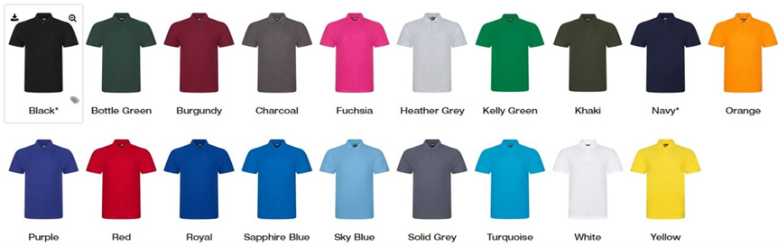 Unisex Colours available in sizes: - * Pro RTC Unisex Polo *8XL only available in these colours